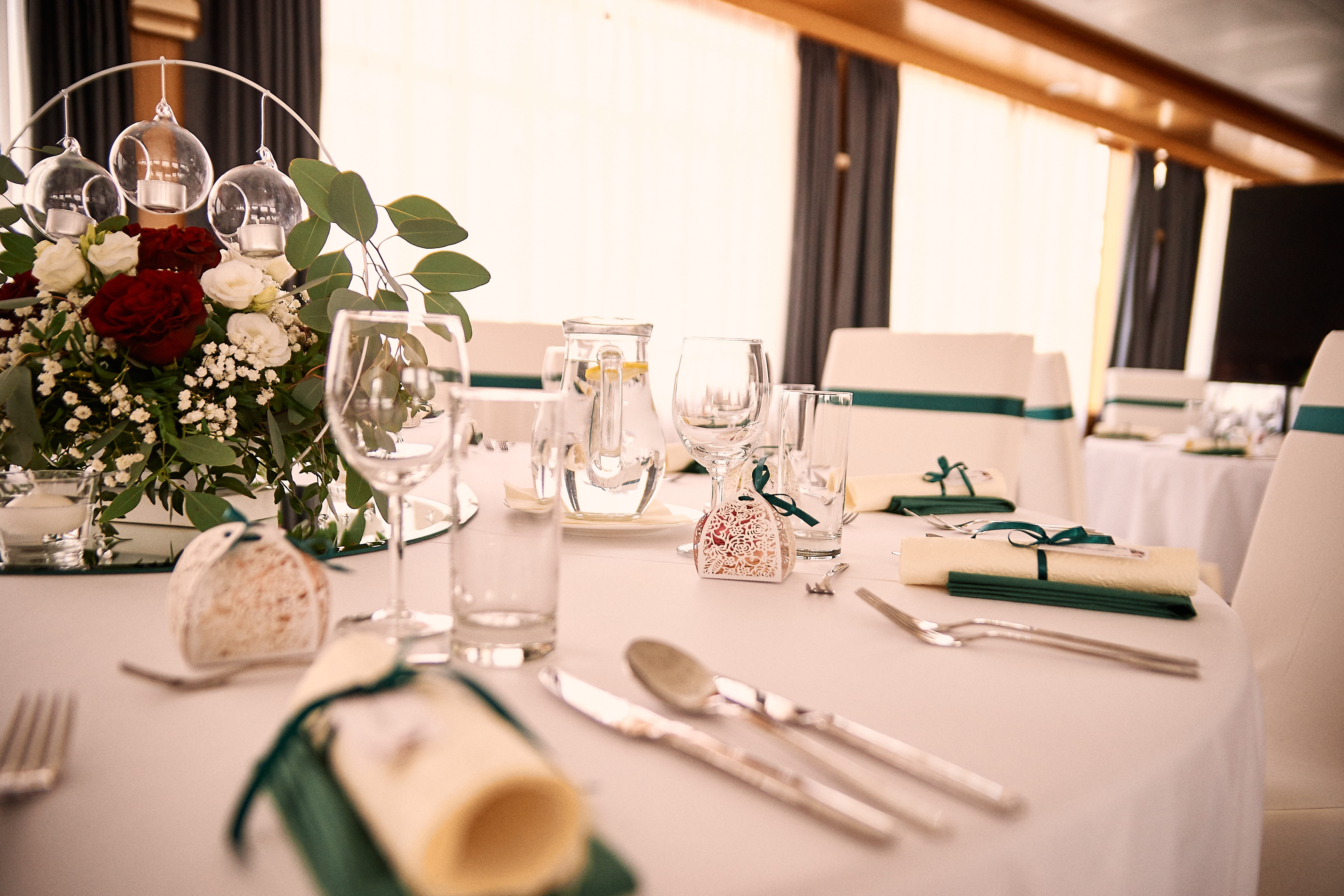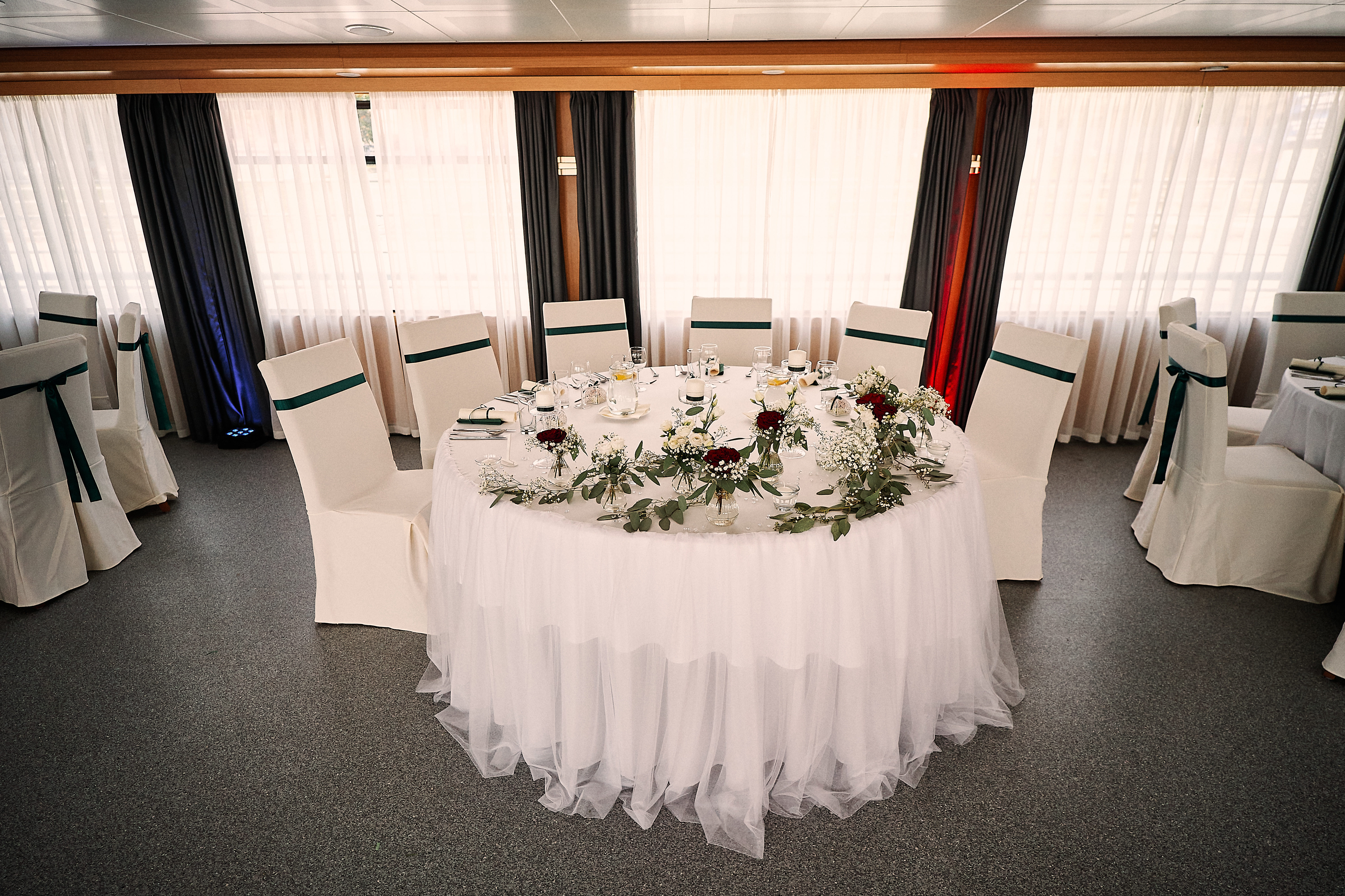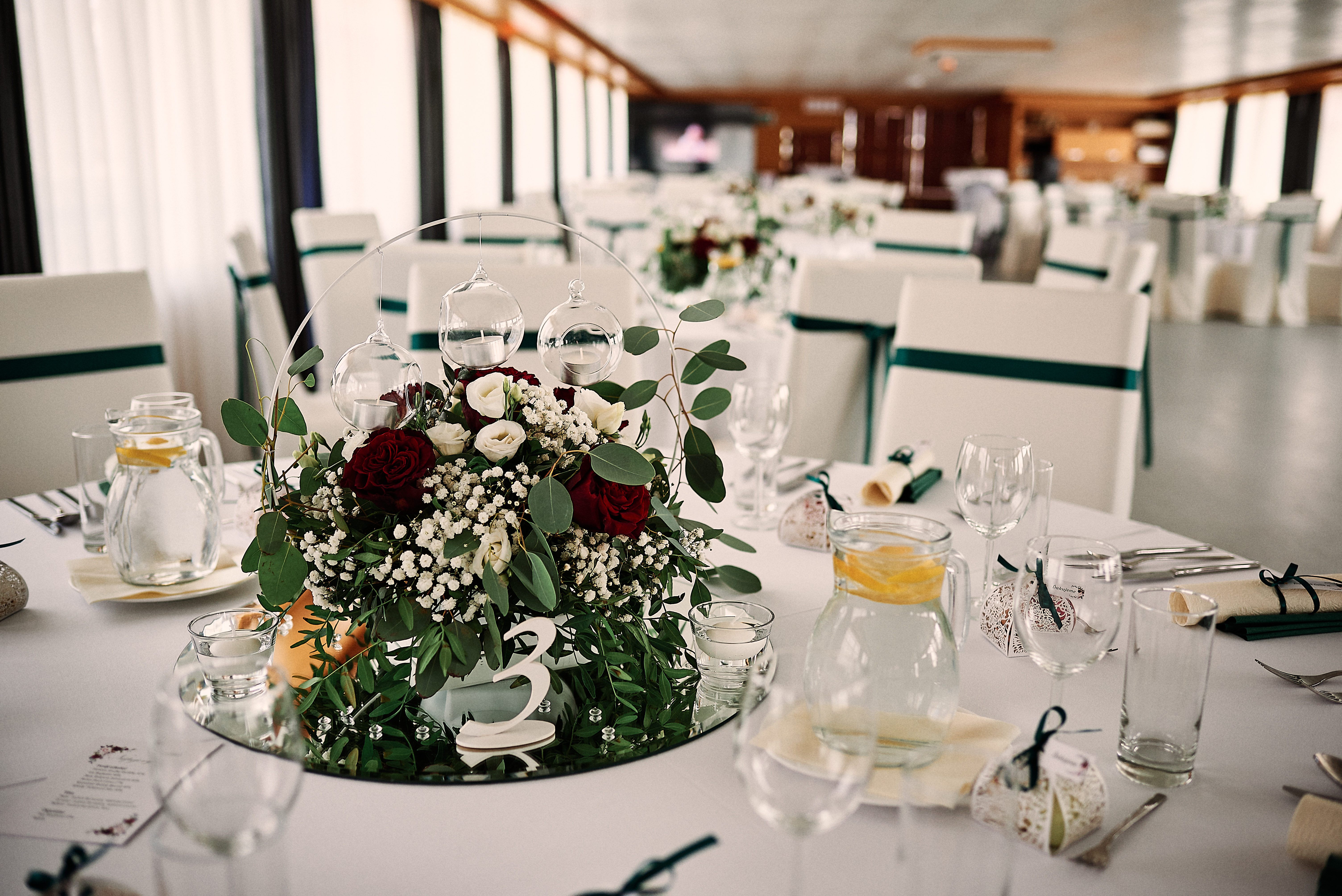 Fotky zo svadobnej výzdoby krásnej letnej svadby na lodi Harmónia, novomanželov Lucii a Mareka.