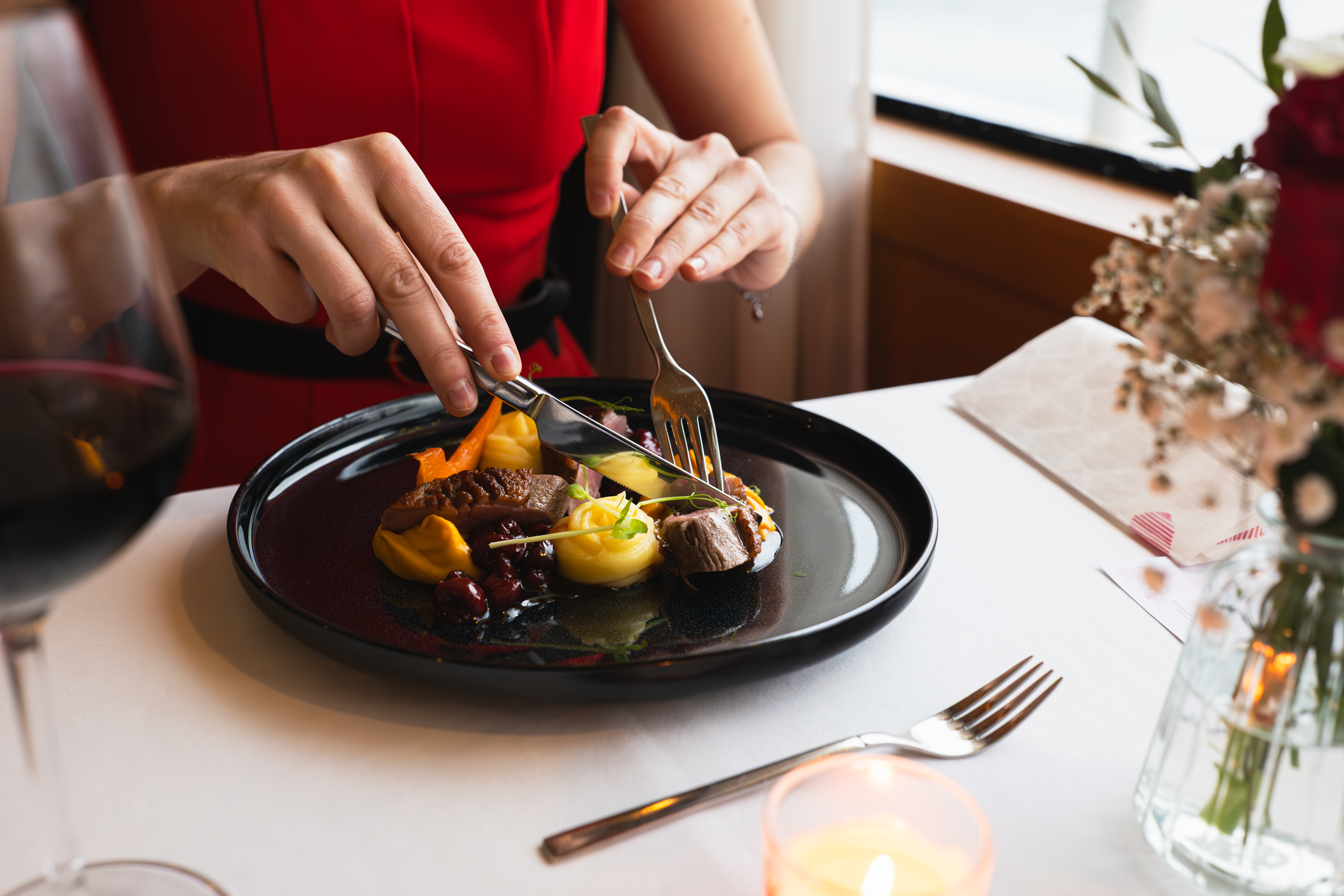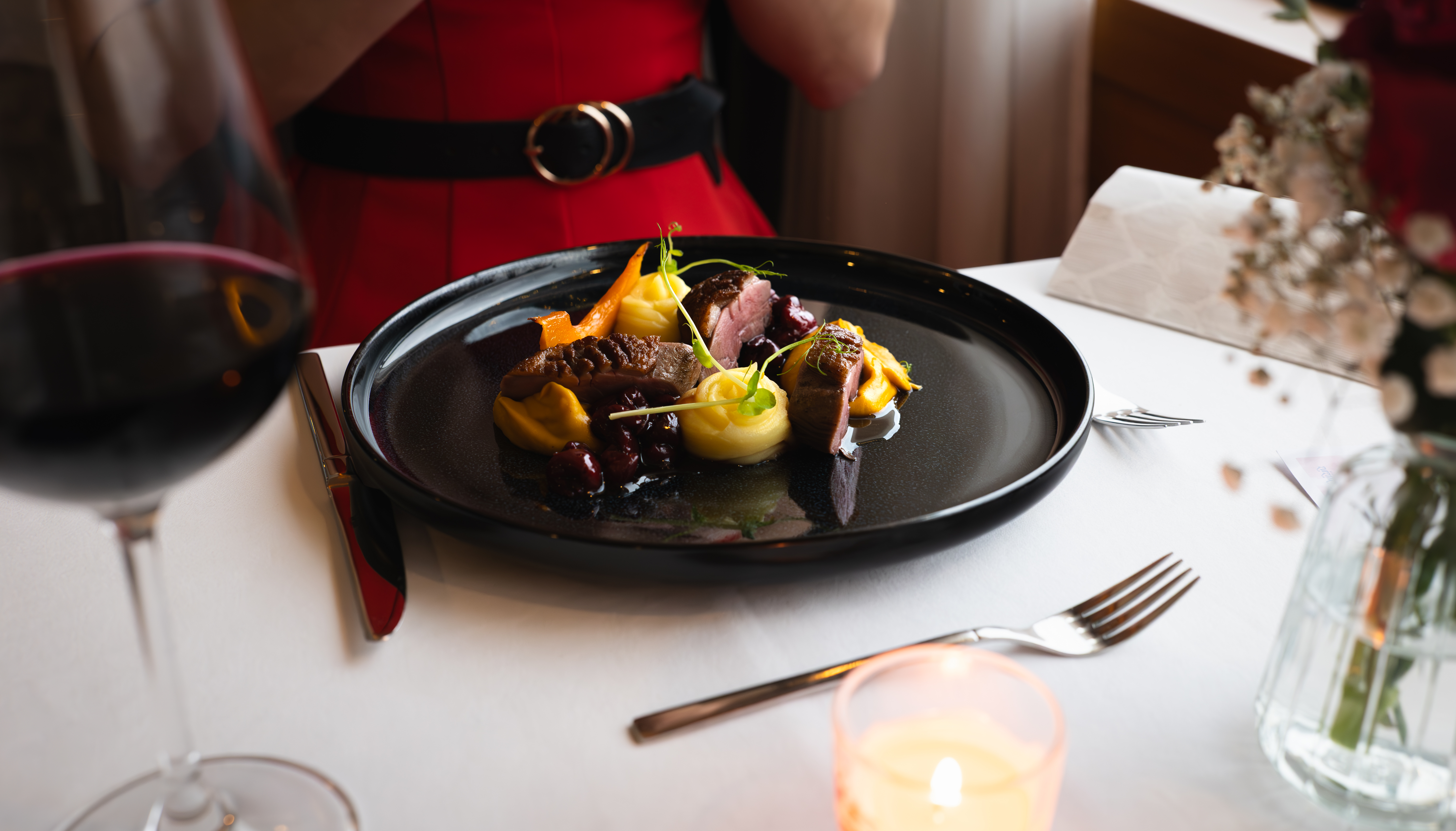 Ako hlavný chod si môžete vybrať medzi šťavnatými kačacími prsiami v doprovode višňového demiglace a hodvábneho pyré z pečenej tekvice, alebo sofistikovanými šafránovými gnocchi, podávanými s fritovanou baby mozzarellou a chrumkavou špargľou.
